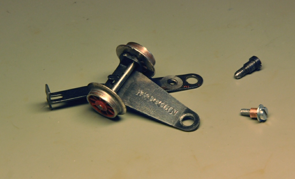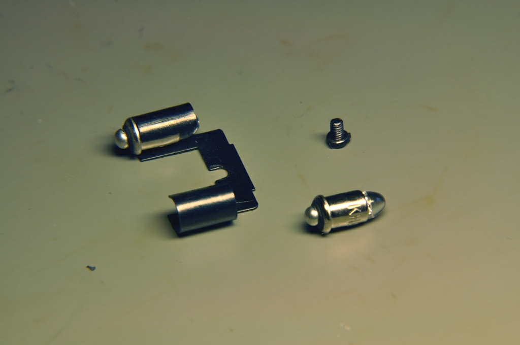 Erstes Problem bei diesem Umbau: das Gewinde der Schraube war defekt. Deswegen habe ich aus einer M2-Schraube, einem Abreiß-Niet und einer Beilagscheibe einen Ersatz gebastelt.